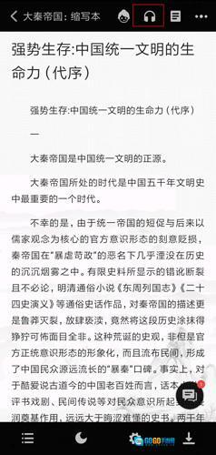 2、轻触手机屏幕,会弹出相应页面,点击右上角的耳机图标按钮,即可开启听书功能。