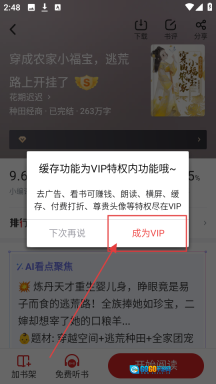 3、弹出的提示表明缓存功能属于VIP特权,要是您想开通VIP,点击【成为VIP】按钮,即可进入VIP会员开通页面。