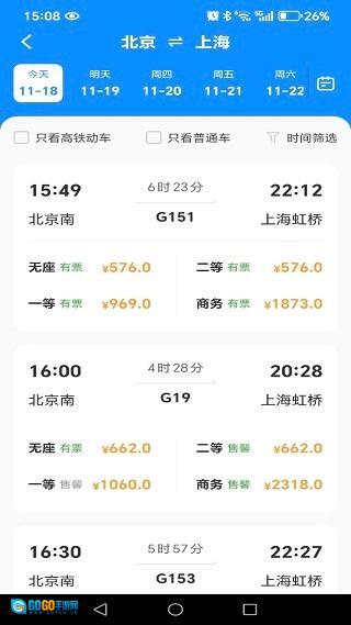 通过一键搜索功能,就能清晰掌握每日的车次安排,信息十分详尽,连不同座位对应的具体票价也都有明确展示。