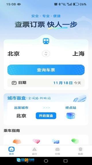 安装进入首页,提供车票查询和乘车指南等服务。
