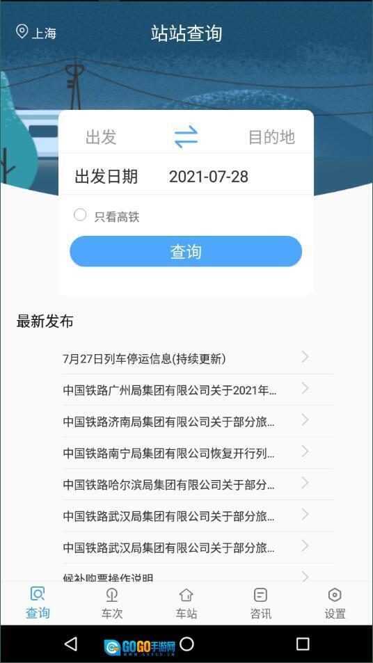 3、·围绕查询、车站、车次、资讯及设置等不同板块,为大家提供服务