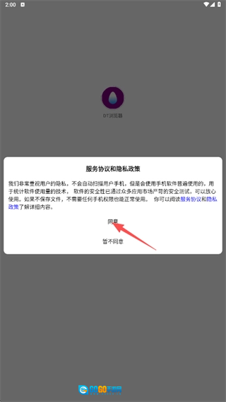 1、软件后,点开软件阅读服务协议等内容,点击同意