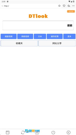 2、进入软件主页后,除搜索功能外,下方还设有相册视频、网络视频、文本等功能选项。