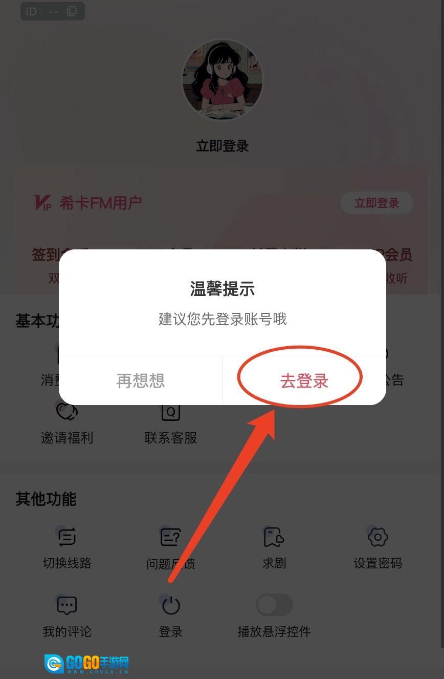 4、用户需要在弹出的窗口提示中点击【去登录】