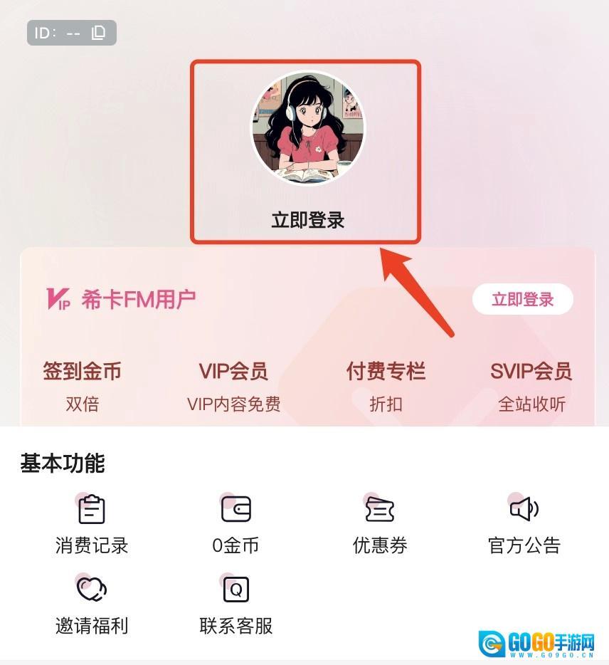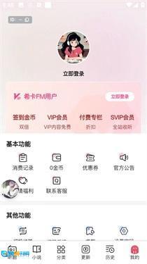 3、可在个人中心页面点击页面上方的【立即登录】按钮,启动希卡FM账号的登录流程。