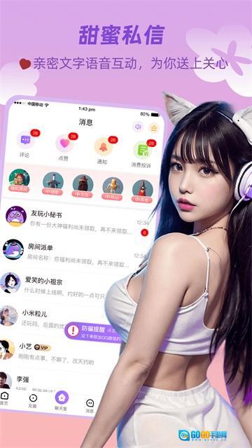 海量优质大神和你配对处CP,小姐姐各项全能、才艺多多,找到属于你的游戏小伙伴;全天陪你畅聊,连麦聊天、语音交友、在线点唱、相亲娱乐,和同城附近的人匿名聊天交友,分享你此刻的心情。