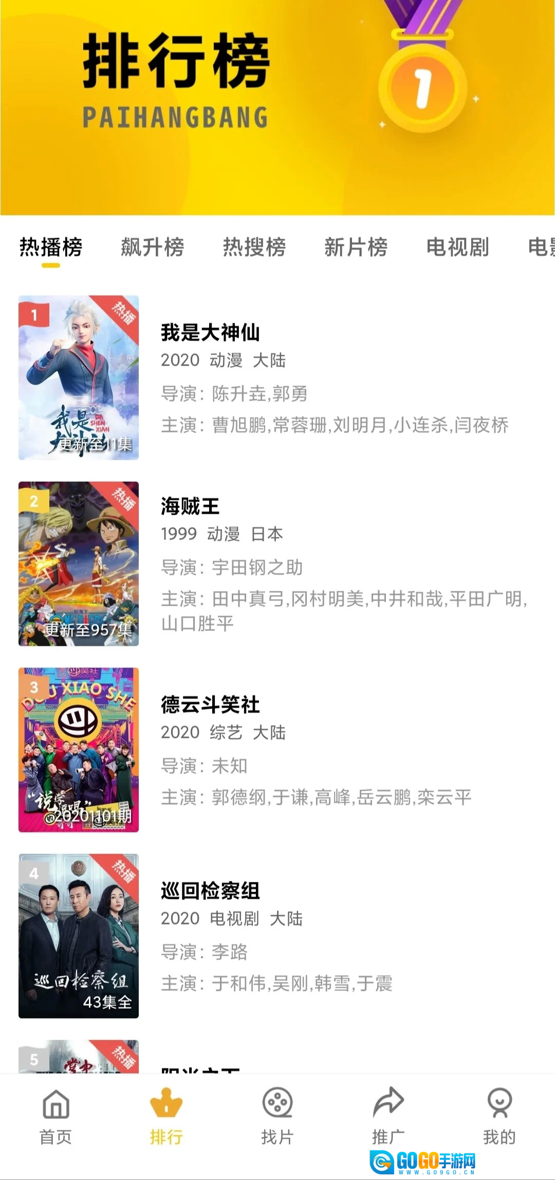 2、在整点视频首页右侧点击“排行”,即可查看各类排行榜,包括热播榜、飙升榜、新片榜等,借助这些榜单,你能发现当下热门的电影或电视剧。