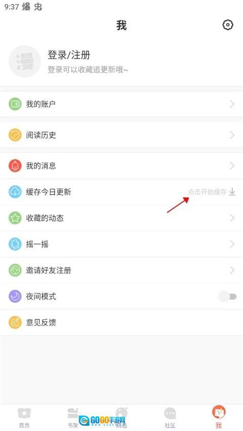 4、收藏完成之后来到我的界面,点击缓存今日更新