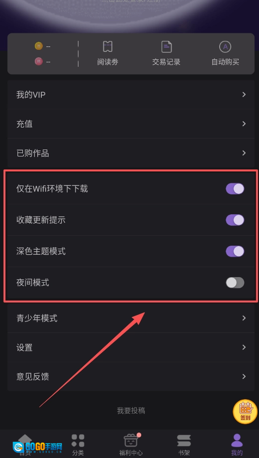 可以巧妙调整账户与阅读相关设置,在“我的”页面开启“深色主题模式”或“夜间模式”,这样能起到保护眼睛的作用。