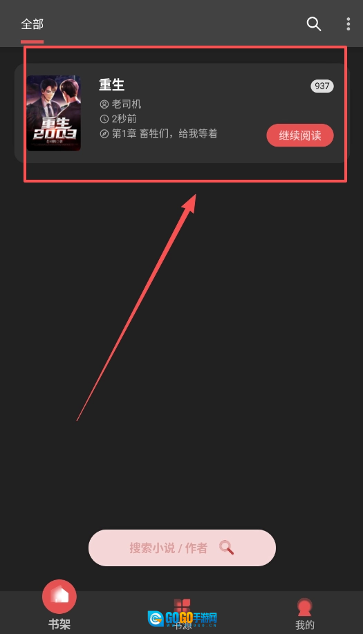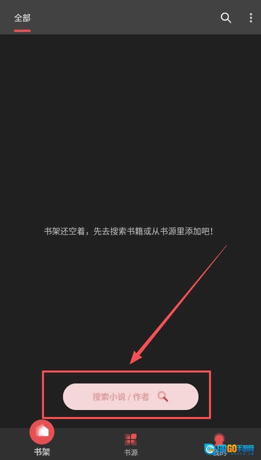 第二步为搜索书籍,返回首页的“书架”板块,借助顶部的搜索功能,输入书名后,就能从已开启的书源里快速定位到你想阅读的那一本。