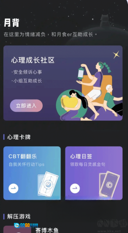 二、心灵舒缓板块:此处是心理成长的交流平台,用户能分享各自的经历,借助心理图卡与互动游戏来舒缓情绪、滋养心灵。
