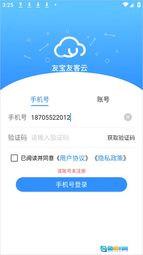 、商品采销与补货、活动营销、客户合约管理及营收结算与提现等关键环节,全面助力商家降本增效、精准决策。友宝友客云App本身不支持直接注册,也无法通过手机号验证码完成登录。若用户未提前注册,系统会提示“未注册”,并且无法接收验证码,具体情况如下图所示: