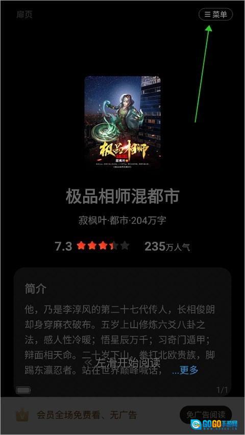 1、用户在阅读小说时,可点击页面右上角的【菜单】按钮。