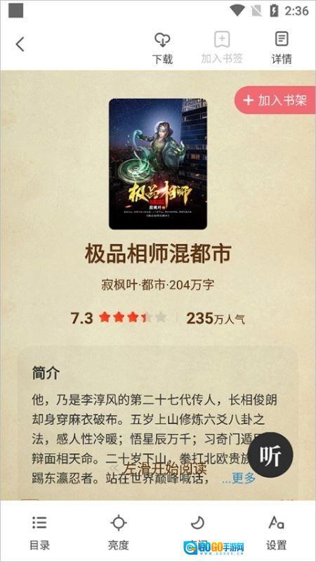 1、小说阅读起来十分轻松,而且能开启听书模式,尽情享受听书的乐趣。