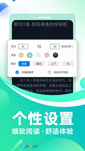 3、提供个性化阅读模式设置,多种模式可自由切换,助你轻松追书