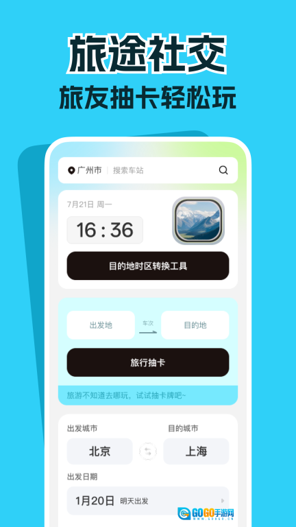 高铁票务管家是一款融合出行服务与社交功能的应用,能实时查询车票余票、一键规划行程,还可查找车站周边车位。它的特色功能有旅友抽卡社交、心情随笔记录与足迹留存,另有翻译助手助力沟通问路,全方位满足用户查票、社交及行程管理的需求。