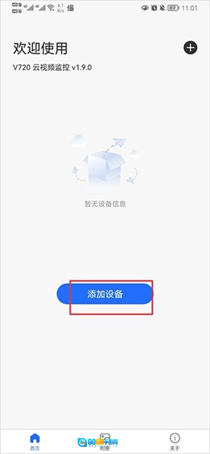 1、打开V720,在首页中点击添加设备