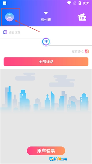 进入界面后,顶部会显示【福州市】,左上角的头像按钮支持点击操作,下方还设有【当前位置】和【全部线路】等功能板块。