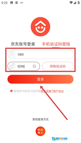 在手机验证码登录界面,输入手机号与验证码,点击【登录】按钮,就能完成登录操作。