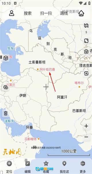 切换至后天地图视图后,界面将展示阿什哈巴德等地区的地理信息,地图采用矢量图风格,定位、路线规划等功能可正常使用。