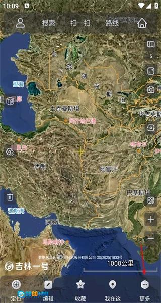 进入软件主界面后,屏幕上会呈现吉林一号卫星图,界面具备定位、编辑等功能选项。若要查看更多功能,点击右下角的“更多”按钮,即可进入功能菜单页面。