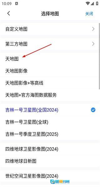 进入地图选择界面后,可选择天地图,该界面同时提供自定义地图、第三方地图等其他选项。