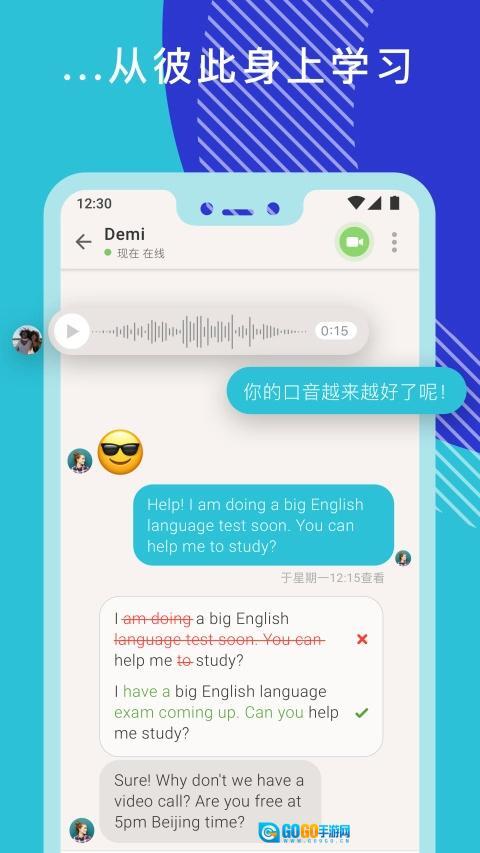 多样化的交流途径:可实现文本聊天、语音留言、音频及视频通话等多种互动形式,能适配用户在不同场景中的学习需求。