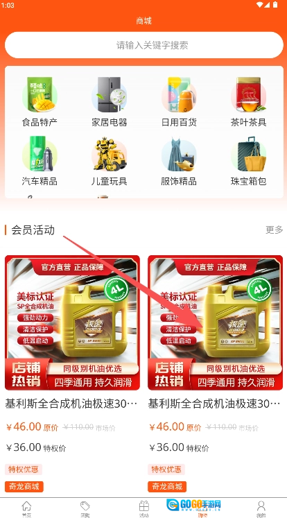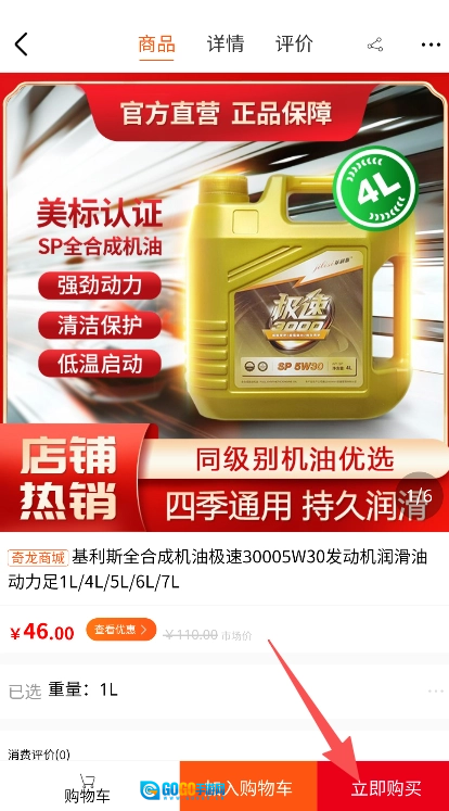 可以在商城里浏览商品,或者通过分类查找的方式,找到像基利斯全合成机油这类目标商品。