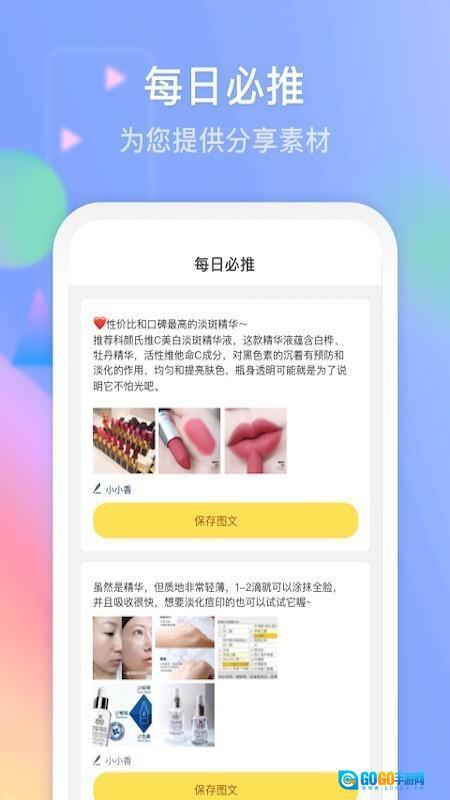 4、根据分享的素材,立即保存图文即可迅速分享