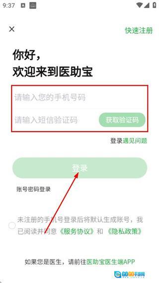 3、在登录界面输入手机号与验证码,勾选相关协议后,点击登录按钮即可完成账号登录流程。