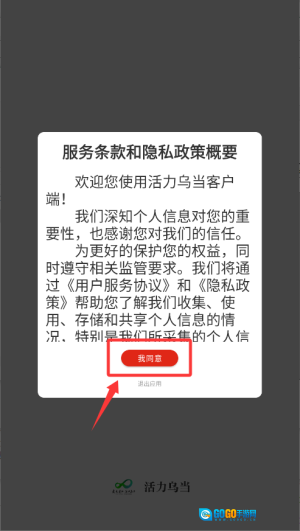阅读并确认服务条款与隐私政策后,点击“我同意”按钮即可进入应用主界面。