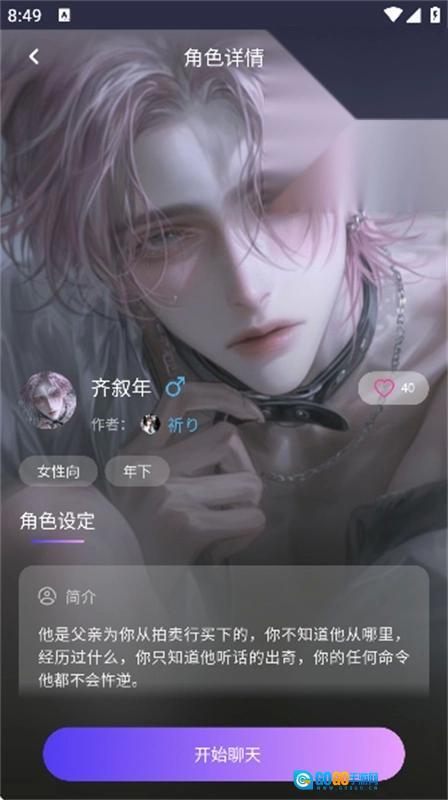 2、找到目标角色后,点击其详情页面下方的【开始聊天】按钮,就能建立对话连接了。