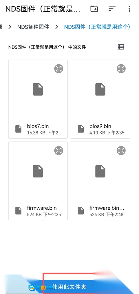 9、找到刚才存放NDS固件的文件夹,点击【使用此文件夹】。