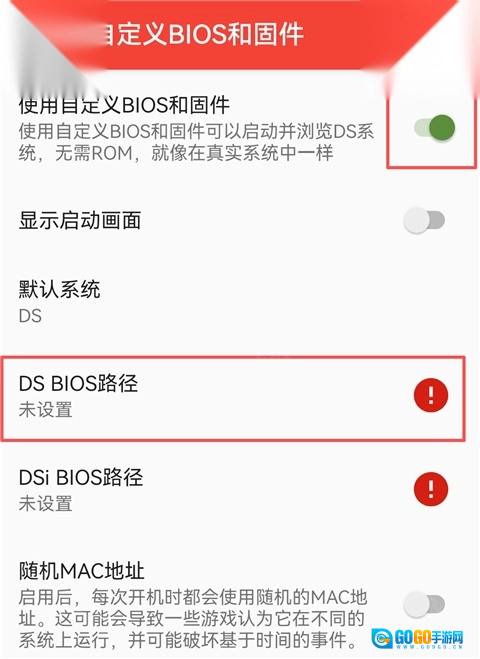 8、勾选【使用自定义BIOS和固件】选项,接着点击【DS BIOS路径】进行相关设置。
