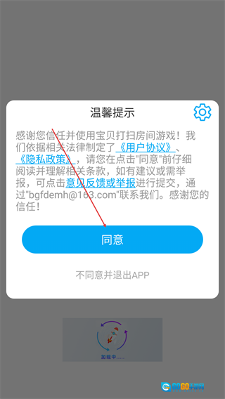 进入《宝贝打扫房间》游戏时,需先阅读《用户协议》与《隐私政策》,再进行相应操作选择;若有建议,可通过“意见反馈或举报”渠道提交。
