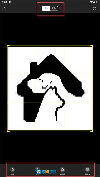 3、进入编辑页面后,可借助【黑白/彩色】选项切换打印模式,并运用【旋转】【调节】等功能对图片效果进行调整。