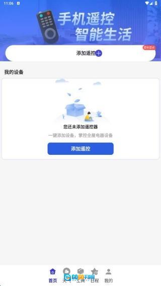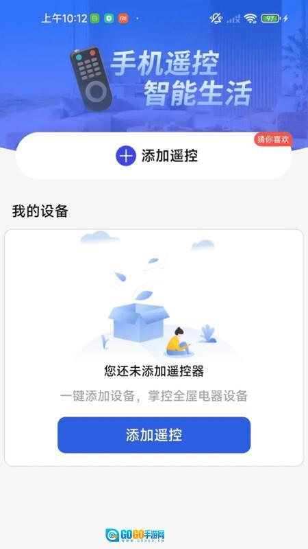 1、安装完成后,首页会呈现添加遥控的选项,点击该选项就能使用,为您提供最便捷的家电管理服务。