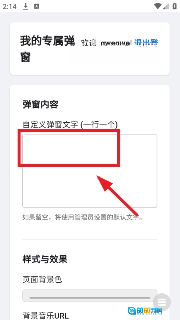 在自定义弹窗的文字区域填写弹幕内容,若此处为空,则会采用管理员预设的默认文字。