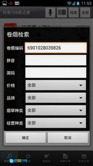 2、进入后找到左侧的卷烟订货功能,接着输入相关编码来查找自己想要的香烟。