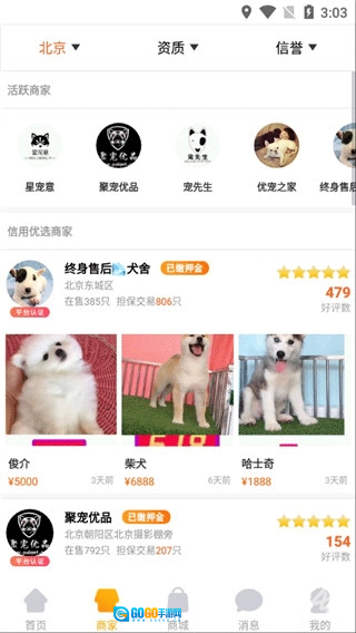 2、可以在商家中挑选自己喜欢的宠物;
