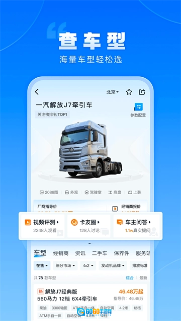 买卡车前一定要查的平台,这里收录了8万款货车的详细参数配置,还有真实的经销商报价,以及113万张汽车实拍图片。