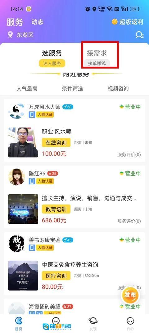 家政、保养、美容、教育、宠物、汽车服务、情感咨询等16个大类、38个子类的服务,无论是全职还是兼职,都可以发布相关服务信息。