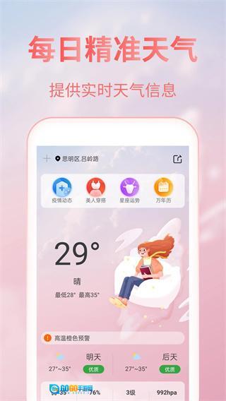 专为女生设计的手机天气查询软件——美人天气,采用了专属女生的粉色风格,带来小清新又可爱的视觉体验。这款最新手机版软件依托多个权威天气数据源,能为用户提供全国多座城市及地区的天气查询服务。感兴趣的用户不妨前往体验,实时掌握最新天气动态。
