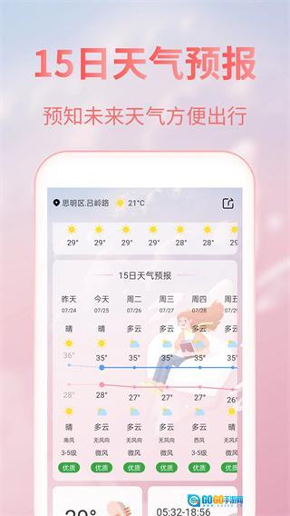 美人天气能为用户呈现未来近15天的天气预报,同时提供各类特殊天气预警,助力用户从容应对不同天气状况。不仅如此,它还具备美人穿搭推荐与体感温度展示功能,宜人的天气往往能让你绽放更美的姿态。