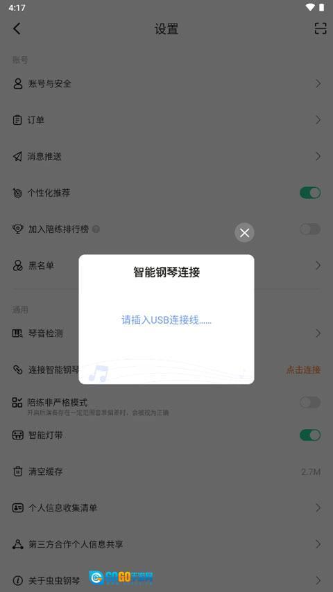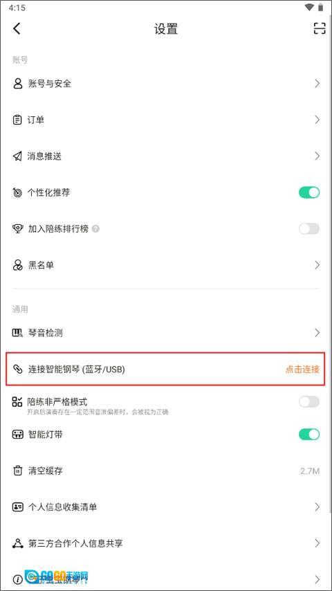 2、在设置界面中选择通用中的“连接只能钢琴”。