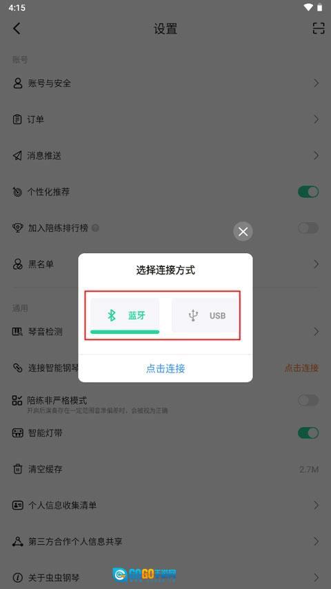 3、接下来选择连接方式:蓝牙或USB,选定后点击连接按钮即可。