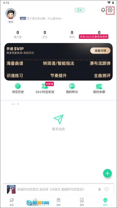 1、点击右下角的“我的”菜单栏,接着点击右上角的齿轮图标进入设置页面。