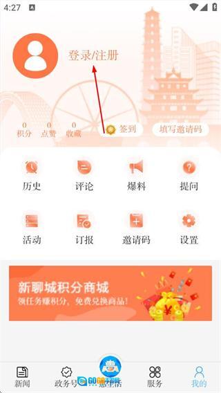 1、启动新聊城应用,点击界面右下角的“我的”选项,即可进入个人中心页面。