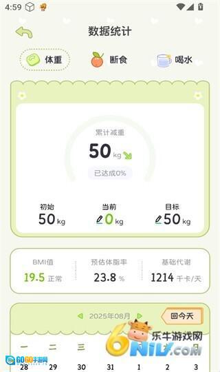 2、全面的数据记录功能,无论是禁食时长、体重的增减变化,还是每日的饮水情况,都能让你清晰掌握,一切尽在掌控之中。