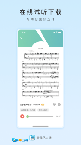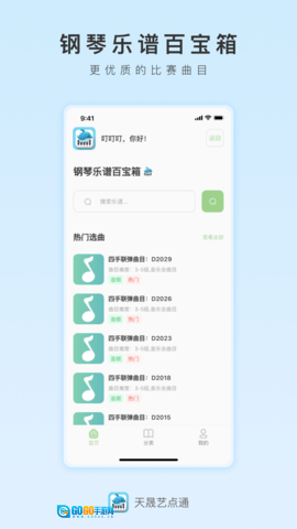 天晟艺点通是一款专为3岁以上琴童与钢琴爱好者打造的钢琴基础学习软件,整合了快速识谱、视唱练耳、乐理训练、钢琴弹唱及视奏训练等多元功能。借助该应用,学习者能在钢琴学习中收获更优质的体验与成效——例如,用户可聆听乐曲旋律后尝试跟唱,应用会依据唱准度给出评分与反馈,助力提升音准感知能力。
